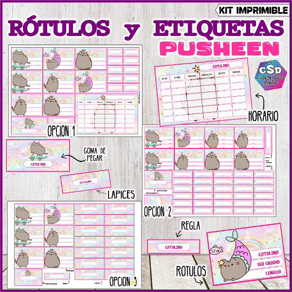 🔹KIT ROTULOS Y ETIQUETAS TEMATICA PUSHEEN🔹